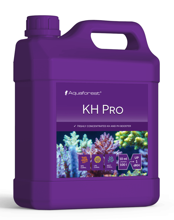 Creado para restaurar de forma fácil y eficaz la dureza de carbonatos (KH) correcta en acuarios marinos, brindándole la seguridad de que su acuario se encuentra en excelentes condiciones. KH Pro fue desarrollado como una versión más concentrada y eficiente del popular KH Plus Lab. KH Pro ofrece una acción aún más potente, ofreciendo una mejora inmediata de los parámetros del agua, crucial en situaciones de emergencia como cambios repentinos en la composición química del agua.