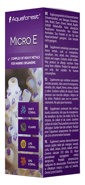 El suplemento contiene metales pesados concentrados: manganeso, vanadio, zinc, níquel, hierro, cromo, cobalto y cobre. Una mezcla de oligoelementos esenciales para todos los organismos marinos.