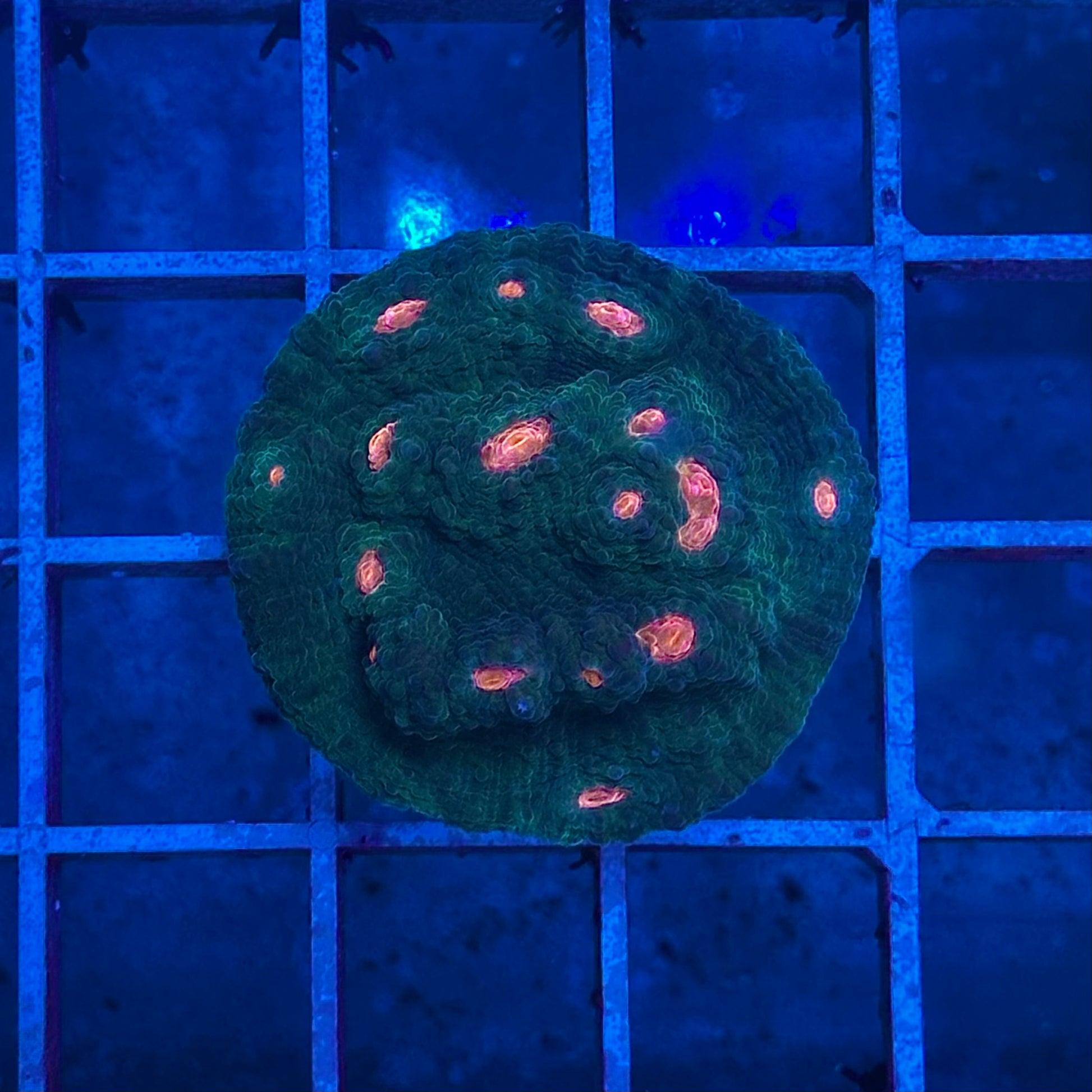 Corale LPS caracterizado por su crecimiento en forma de plato o costra, que se expanden horizontalmente sobre el sustrato o las rocas, formando estructuras amplias y a menudo coloridas. Sus pólipos grandes y carnosos pueden presentar una gran variedad de tonos vibrantes y patrones intrincados, incluyendo mezclas de verdes, rojos, azules, púrpuras y amarillos, frecuentemente con destellos metálicos o fluorescentes. Son corales relativamente resistentes, de crecimiento lento a moderado, y muchos aceptan alimentación directa, lo que los hace populares tanto entre principiantes como entre acuaristas avanzados.