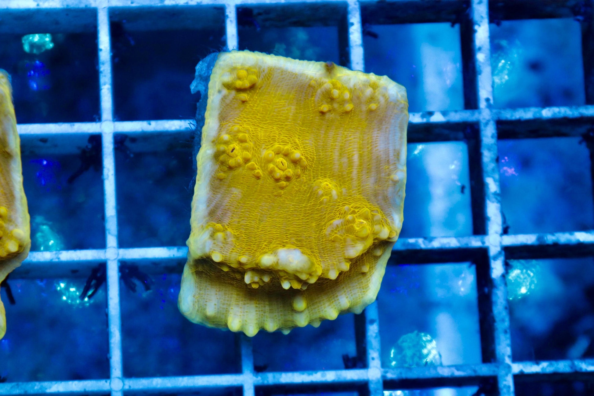Corale LPS caracterizado por su crecimiento en forma de plato o costra, que se expanden horizontalmente sobre el sustrato o las rocas, formando estructuras amplias y a menudo coloridas. Sus pólipos grandes y carnosos pueden presentar una gran variedad de tonos vibrantes y patrones intrincados, incluyendo mezclas de verdes, rojos, azules, púrpuras y amarillos, frecuentemente con destellos metálicos o fluorescentes. Son corales relativamente resistentes, de crecimiento lento a moderado, y muchos aceptan alimentación directa, lo que los hace populares tanto entre principiantes como entre acuaristas avanzados.