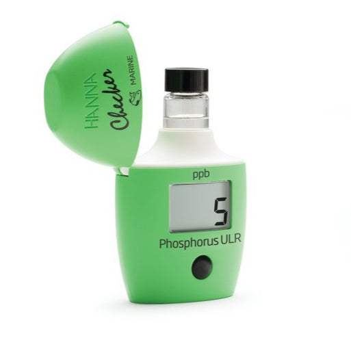 El medidor de bolsillo de Fósforo en agua marina, Checker HANNA HI736, es un colorímetro digital para realizar test de fósforo El checker de Fósforo Agua Marina, HI736, se suministra con cubetas con tapa (2), reactivo para 6 tests, batería, instrucciones y guía rápida de uso.