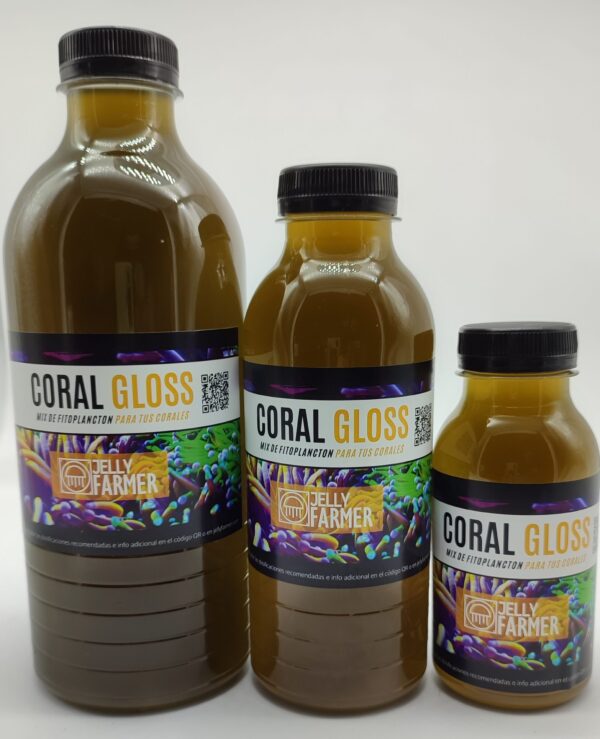 La composición de Coral Gloss ha sido diseñada para servir de alimento a corales y otros organismos filtradores y planctónicos del acuario siendo una fuente rica de ácidos grasos esenciales. Por su alta concentración de la microalga viva T-ISO o «Golden Fat Algae» este producto permite alimentar corales sin alterar la carga de nutrientes del tanque, pudiendo llegar incluso a consumir pequeñas cantidades de los mismos.